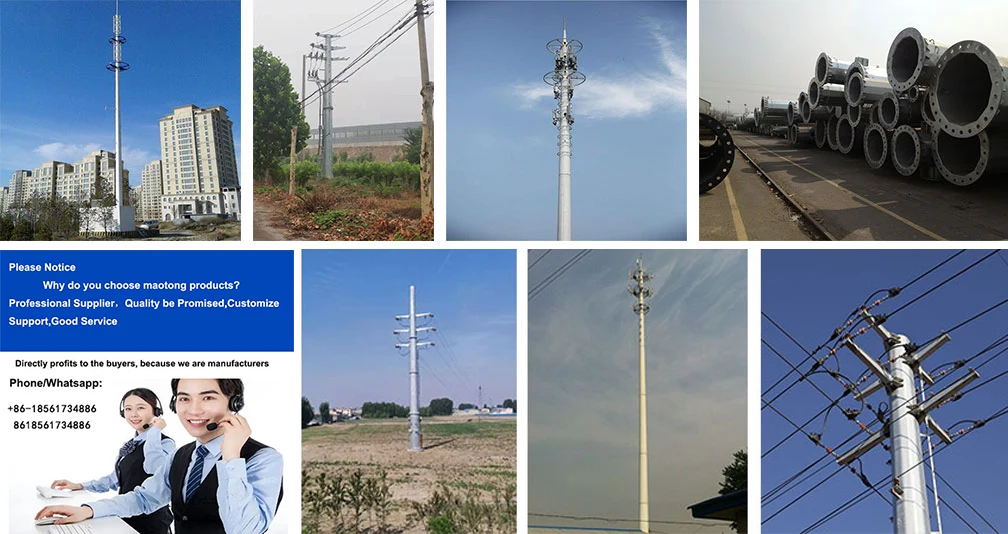 व्यावसायिक निर्माताहरूको रूपमा, माओ टोङले तपाईंलाई 10KV एकल पाइप ट्रान्समिशन मोनोपोल इलेक्ट्रिक टावर उपलब्ध गराउन चाहन्छन्। र हामी तपाईंलाई उत्तम बिक्री पछि सेवा र समयमै डेलिभरी प्रदान गर्नेछौं। एकल टावर, ताररहित संचारको लागि फ्रीस्ट्यान्ड टावरिङ संरचनाबाट बनेको एकल स्टील पाइपलाई जनाउँछ, यसको मुख्य भाग गोलाकार वा बहुभुज खण्ड वेल्डेड स्टील पाइप हो, जसलाई एकल टावर भनिन्छ। एकल ट्यूब टावर बडी सामग्री Q345B, अन्य सहायक सामग्री Q235B, टावर बडी शुद्ध इस्पात संरचना हो, कुनै सौन्दर्य र छलावरण मोडेलिङ छैन। सामान्य टावर आकार प्लग-इन प्रकार, बाह्य आरोहण कोष्ठक प्रकार, आन्तरिक / बाह्य flange प्रकार र यस्तै छ