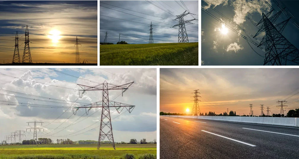 4kv, 4.8kv, 12kv, 13.2kv, 22KV, 23kv, 24KV, 24.9kv, 27.6kv, 33kv, 34.5kv, 35kv, 46kv, 66kv, 69kv, 610kv, 61kv, 132kv, 138kv, 150kv, 154kv, 161kv, 220kv, 230kv, 275kv, 287kv, 330KV, 345kv, 380kv, 400kv, 500kv50kv, 570kv50kv 765kv, 800kv, 1000kv, 1100kv, कोण टावर सहित टावरहरू, ट्युबुलर टावर; SST टावर र guyed टावर; एकल सर्किट टावर, डबल सर्किट टावर र बहु सर्किट टावर; जाली टावर वा मोनो पोल टावर; एच-फ्रेम, एम-टाइप टावर, टी-टाइप टावर, वाई-टाइप टावर; र हरेक प्रकारका उपयोगिता पोलहरू, प्रसारण र वितरण पोलहरू, स्विच पोलहरू; सबस्टेशन फ्रेमवर्क आदि